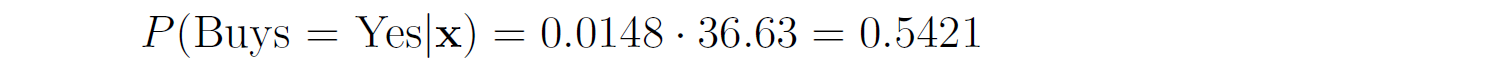 You need to predict whether this customer will buy the product or not. — We first compute the class prior probabilities by counting the number of rows that have Buys = Yes (6 out of 10) and the number of rows that have Buys = No (4 out of 10):  Then, we compute the likelihood of the features in each class:  Therefore, the class posterior probabilities are:  _α_ is the normalization factor (_α_ = 1 / _P_(**x**)). Since _P_(Buys = Yes|**x**) > _P_(Buys = No|**x**), our prediction is that the customer will buy the product. If we want to get the actual probability that the customer will buy the product, we can first find the normalization factor using the fact that the two posterior probabilities must sum to 1:  Then, we can plug it in the posterior probability for Buy = Yes:  The probability that the customer will buy the product is 54.21%. ## Multinomial Naive Bayes In the multinomial event model, we assume that the data set has only one categorical feature _x_ that can take one of _m_ categories, and each feature vector (_x_₁, …, _xₘ_) is a **histogram**, where _xⱼ_ counts the number of times _x_ had the value _j_ in that particular instance. This event model is particularly useful when working with text documents, where _m_ is the number of words in the vocabulary, and each feature _xⱼ_ represents the number of times the _j_th word from the vocabulary appears in the document. This representation is called the **bag-of-words** model:  In this event model, we estimate the probability _P_(_x = v_|_y_ = _k_) as the frequency in which feature _x_ gets the value _v_ in samples of class _k_:  where _nᵥₖ_ is the number of samples in class _k_ in which _x_ gets the value _v_, and _nₖ_ is the total number of samples in class _k_. ### Example: Spam Filter We would like to build a spam filter based on a training set with 100 emails: 80 of them are non-spam (ham) and 20 of them are spam. The counts of the words in each type of email are given in the following tables:  A new email has arrived with the text "rich friend need money". Is this a ham or a spam? Let's first compute the class prior probabilities:  Next, we estimate the likelihoods of the words in each type of email. The total number of words in the ham emails is: 80 + 5 + 5 + 20 + 50 + 40 = 200, and the total number of words in the spam emails is: 20 + 20 + 30 + 25 + 25 = 120. Therefore, the likelihoods of the words are:  Consequently, the class posterior probabilities are:  Therefore, our prediction is that the email is spam. ## Laplace Smoothing If one of the features and a given class never occur together in the training set, then the estimate of its likelihood will be zero. Since the likelihoods of the features are multiplied together, this will wipe out all the information that we have from the other features. For example, since the word "movie" is missing from the spam emails, if we get an email with the word "movie" in it, it will be automatically considered as a ham, even if the other words in the email are very "spammy". As a concrete example, consider an email with the text "movie rich rich prince". This email will be classified as a ham, although the words "rich" and "prince" are highly correlated with spam emails, because the posterior probability of Spam is zero:  In order to deal with this issue, we incorporate a small sample correction (called pseudocount) in all the probability estimates, such that no probability is never set to exactly zero. In multinomial Naive Bayes, this correction is applied as follows:  where _α_ is a smoothing parameter and _n_ is the total number of samples in the training set. Setting _α_ = 1 is called **Laplace smoothing** (the most common one), while _α_ < 1 is called Lidstone smoothing. Similarly, in categorical Naive Bayes the correction is applied as follows:  where _nⱼ_ is the number of possible categories of feature _j_. — Revisiting our spam filter example, let's apply Laplace smoothing by adding a pseudocount of 1 to all the words:  This time, the email with the text "movie rich rich prince" will be classified as a spam, since:  ## Gaussian Naive Bayes Up until now we assumed that all our features are discrete. How does the Naive Bayes model deal with continuous features? There are three main approaches to deal with continuous features: 1. Discretize the feature values and obtain a Bernoulli or categorically distributed features. 2. Assume that the feature is distributed according to some known probability distribution (usually a normal distribution) and estimate the parameters of that distribution from the training set (e.g., the mean and variance of the normal distribution). 3. Use [KDE (kernel density estimation)](https://en.wikipedia.org/wiki/Kernel_density_estimation) to estimate the probability density function of the feature using the given sample points as kernels. In Gaussian Naive Bayes, we take the second approach and assume that the likelihood of the features is Gaussian:  where _μⱼₖ_ is the mean of the values of _xⱼ_ in all the samples that belong to class _k_, and _σⱼₖ_ is the standard deviation of these values (these are the maximum likelihood estimates of the true parameters of the distribution). — The event models described above can also be combined in case we have a heterogenous data set, i.e., a data set that contains different types of features (for example, both categorical and continuous features). ## Naive Bayes Classifiers in Scikit-Learn The module sklearn.naive_bayes provides implementations for all the four Naive Bayes classifiers mentioned above: 1. [BernoulliNB](https://scikit-learn.org/stable/modules/generated/sklearn.naive_bayes.BernoulliNB.html#sklearn.naive_bayes.BernoulliNB) implements the Bernoulli Naive Bayes model. 2. [CategoricalNB](https://scikit-learn.org/stable/modules/generated/sklearn.naive_bayes.CategoricalNB.html#sklearn.naive_bayes.CategoricalNB) implements the categorical Naive Bayes model. 3. [Multinomi
