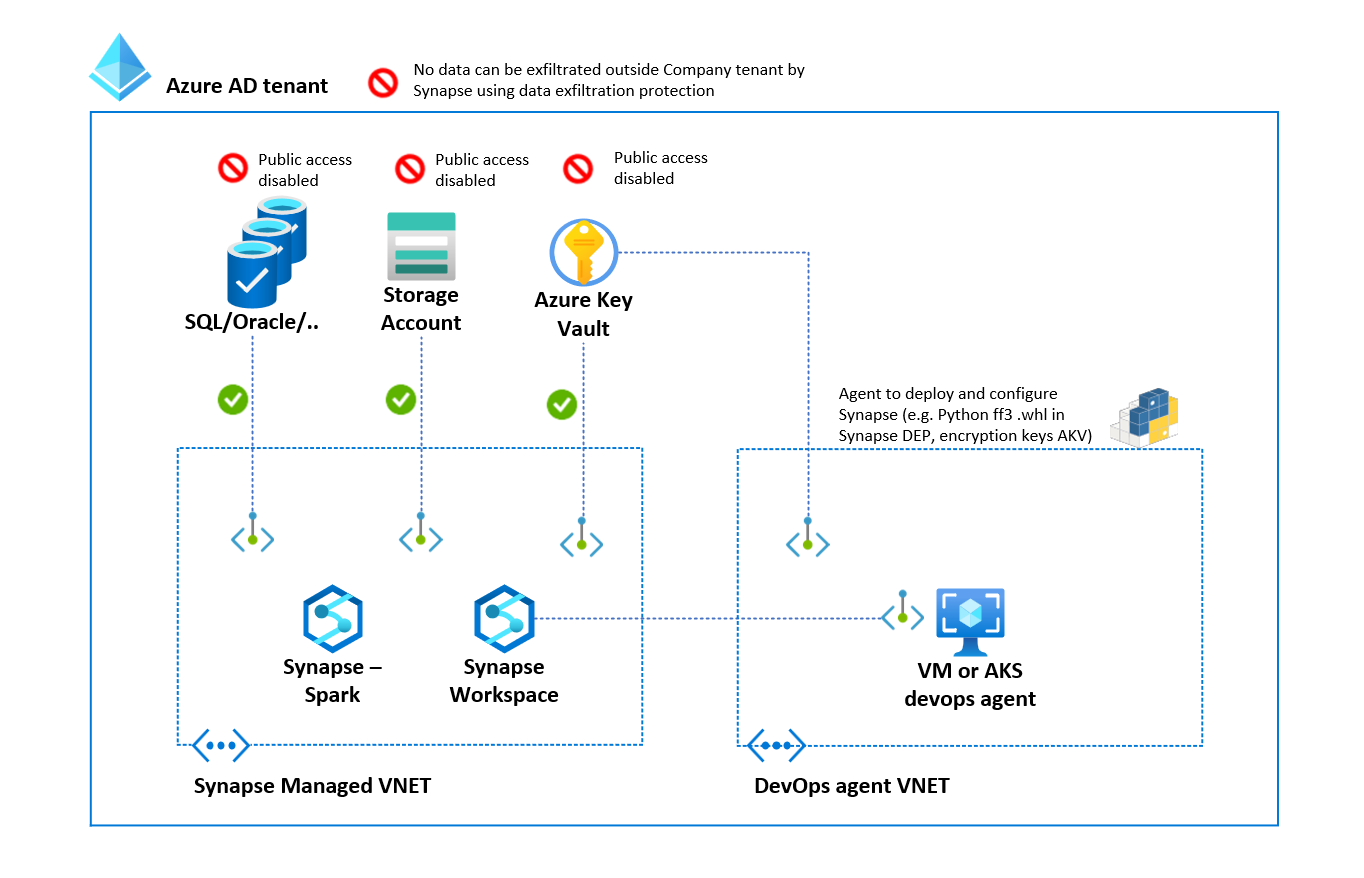 - Security: Synapse Analytics workspace that used has the following security in place: Private endpoints to connect to Storage Account, Azure SQL (public access can be disabled) and 100 of other data sources (including on-premises); Managed Identity to authenticate to Storage account, Azure SQL and Azure Key Vault in which the secrets are stored that are used by ff3 for encryption; RBAC authorization to grant access to Azure Storage, Azure SQL and Azure Key Vault and Synapse data exfiltration protection to prevent that data leaves the tenant by a malicious insider